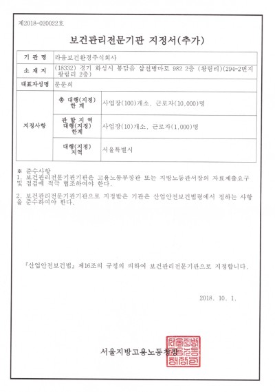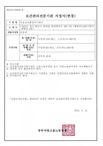 고객과 함께 안전하고 건강한 일터를 만들어가는 전문기관